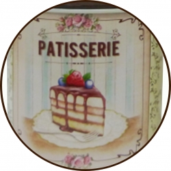 Jogo mantimentos em alumínio 5 peças feito em decoupage com fundo bege ;